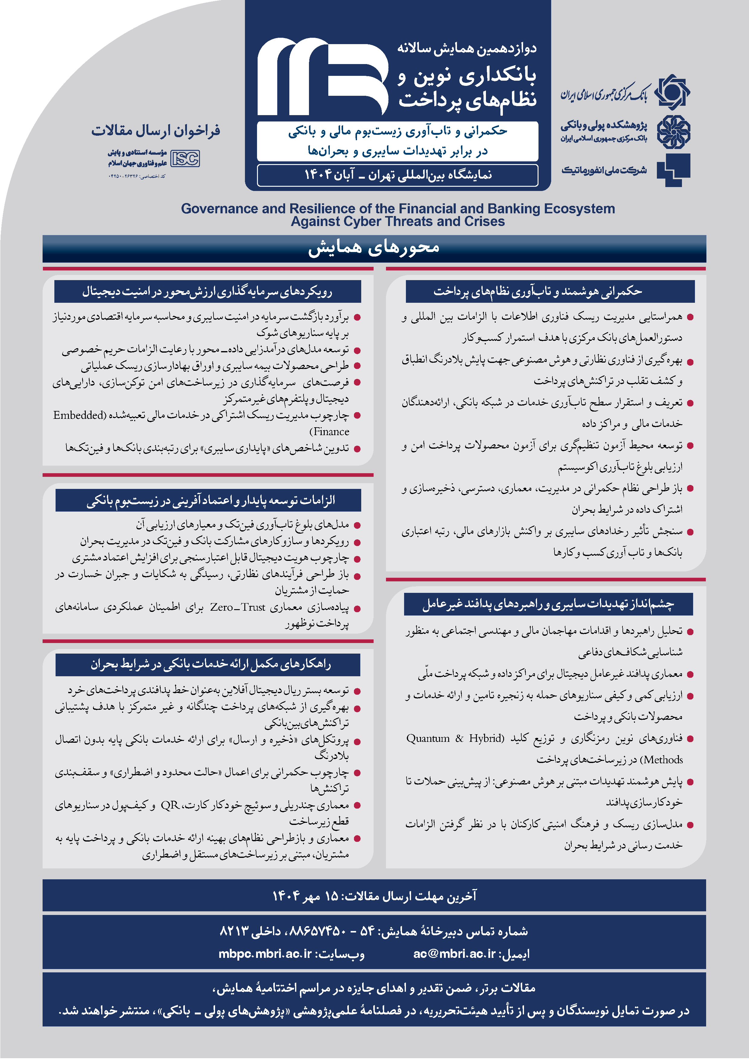 فراخوان ارسال مقالات دوازدهمين همايش بانکداري نوين و نظامهاي پرداخت منتشر شد.
